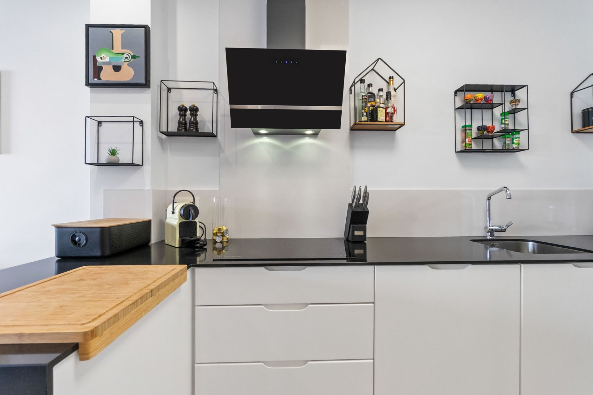 On the ground floor, you’ll find a bright and spacious living room with an open-plan stylish kitchen, sold fully equipped with appliances. This level also features one bedroom and a bathroom, ideal for guests or for those who prefer living on one level.