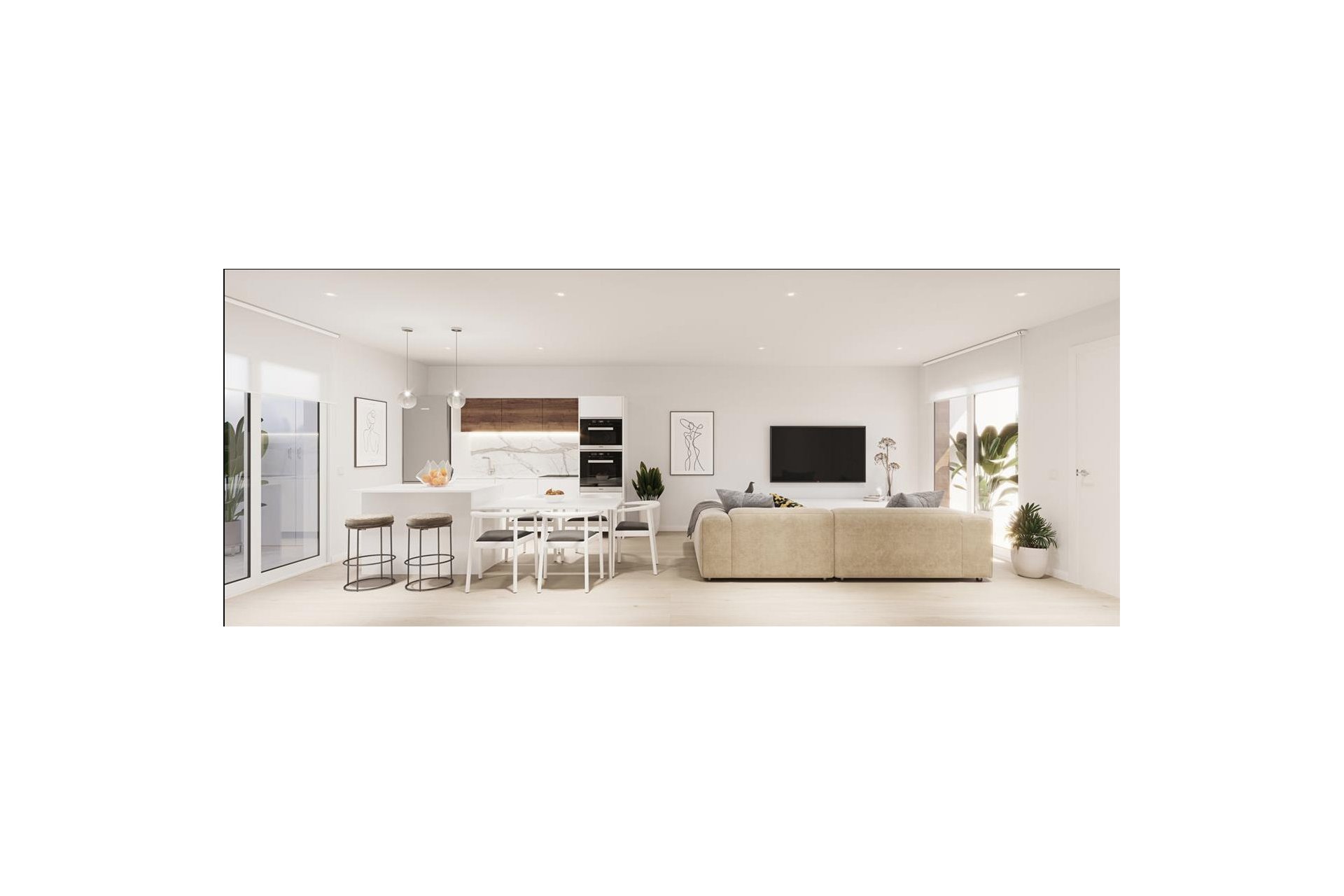 Rækkehusene er designet med et moderne og funktionelt koncept med en indretning, der får mest muligt ud af hver eneste kvadratmeter. Boligmuligheder: 2 eller 3 soveværelser med 2 badeværelser på en etage, eller 3 soveværelser og 3 badeværelser på to etager. Stue og spisestue i åbent plan med store vinduer, der giver naturligt lysindfald og forbindelse til det udendørs område. Fuldt udstyret køkken med ovn, mikroovn, køleskab, integreret opvaskemaskine, kogeplade og emhætte. Soveværelser med indbyggede garderobeskabe med skuffer, der giver stor opbevaringskapacitet. Fuldt udstyrede badeværelser med badeværelsesmøbler, spejl, toilet og bruser med glasafskærmning. Forinstallation af kanaliseret aircondition, der giver termisk komfort på ethvert tidspunkt af året.
