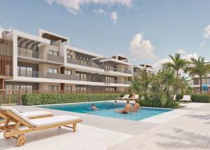 Beliggende i den charmerende by Pilar de la Horadada tilbyder dette eksklusive boligområde en unik livsstilsoplevelse ved Middelhavskysten. Med i alt 24 ejendomme kan beboerne vælge mellem lejligheder, stueetager og penthouses, alle designet til at maksimere komfort og funktionalitet. Nærheden til havet, kun 250 meter væk, garanterer spektakulære udsigter og hurtig adgang til strandene. Derudover ligger den nærmeste lufthavn 46 kilometer væk, hvilket letter internationale forbindelser. Hver bolig er udstyret med gulvvarme, indbyggede skabe og forudinstalleret aircondition, hvilket sikrer en hyggelig atmosfære året rundt. Muligheden for at købe ejendommene møblerede og med inkluderede apparater tilføjer betydelig værdi, hvilket muliggør en problemfri flytning. Dette boligområde er ideelt for dem, der søger et permanent hjem eller en ferieflugt i et privilegeret miljø.