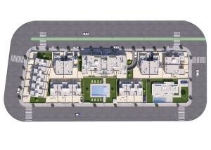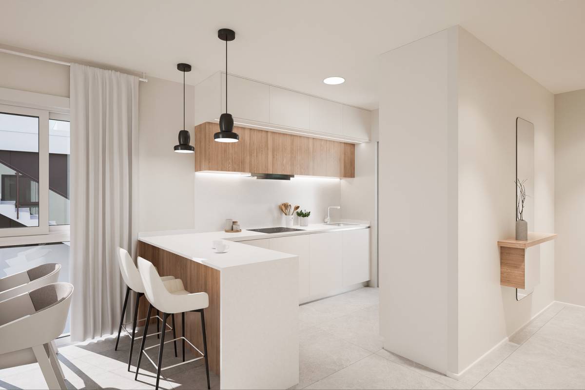 Boligernes indre er omhyggeligt designet for at tilbyde maksimal komfort og stil. Porcelænsflisegulvene giver en elegant og holdbar finish, mens aircondition sikrer et behageligt miljø året rundt. Køkkenerne er udstyret med moderne apparater, hvilket letter hverdagen. Indbyggede skabe i soveværelserne giver effektiv og organiseret opbevaring. Hvert enkelt detalje er overvejet for at skabe et hyggeligt og funktionelt rum, hvor kvalitet og design mødes for at tilbyde et enestående hjem.